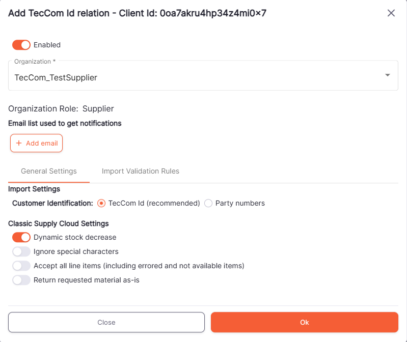 Under General Settings you can enable or disable settings for Classic Supply Cloud (only Supplier).