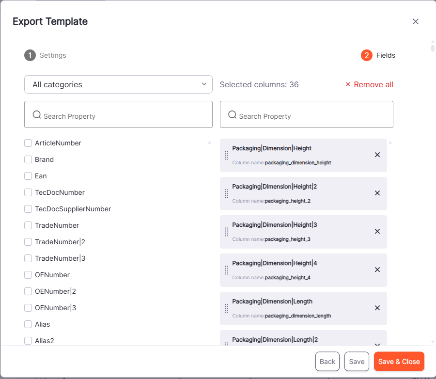 With Templates you have the possibility to define the export columns for csv exports for your buyer organizations.